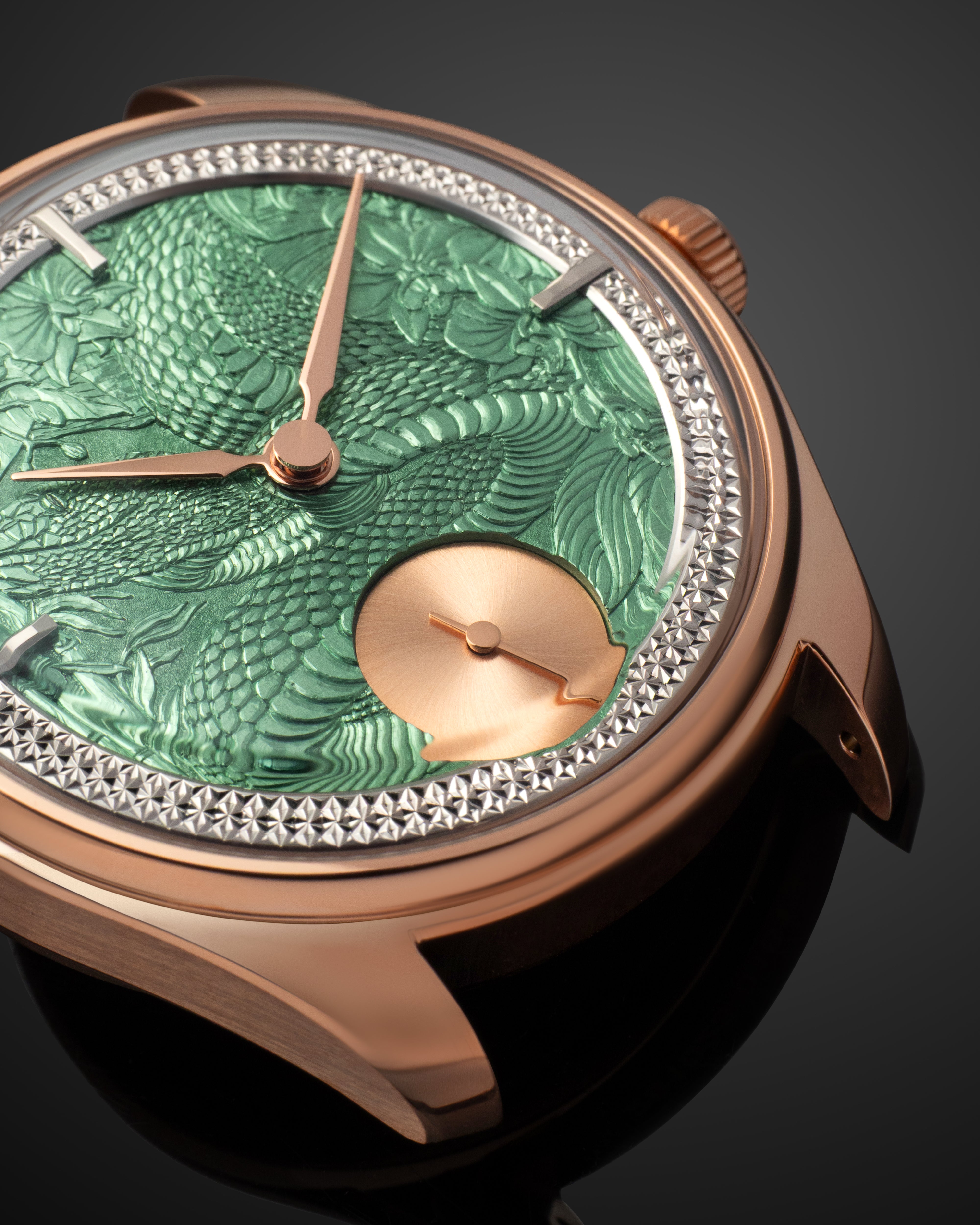 This is a recent project I completed for a local client here in Vietnam. This is my very first piece featuring a rose-gold plated case, paired with a hand-engraved dial and chapter rings. It would have been a perfect match for my upcoming Prestige V2 movement, but due to time and budget constraints, we went with a simpler configuration. Still, I’m truly happy with how it turned out